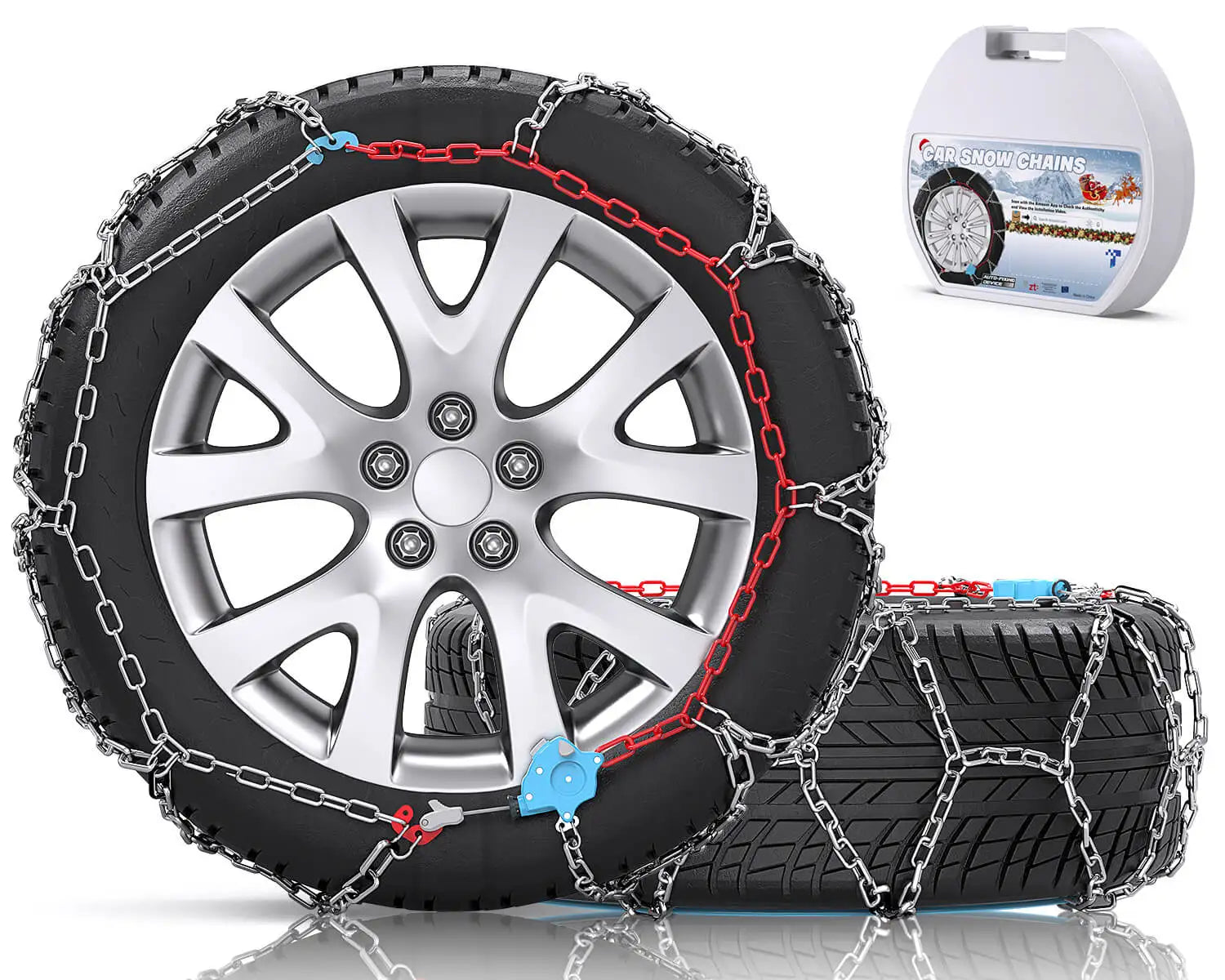 This is a set of auto tensioning tire chains. The kit contains chains for two wheels, which should be sufficient for most situations, but if you drive an all wheel drive or 4 wheel drive vehicle, you might want to get 2 sets.